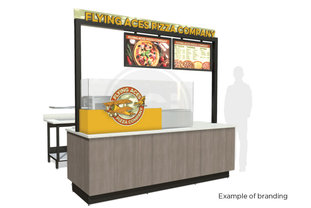 Add equipment and small wares, and you’re ready to serve. Flexible, functional, and polished, the kiosk that fits your space.