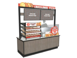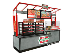 The new kiosk calls attention to the food service in an all-in-one setup.