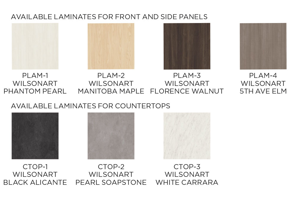 Select from a variety of standard laminates and countertop finishes.